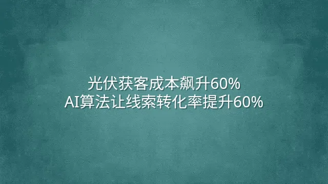 2025年行业数据显示,光伏企业平均获客成本已达1800元/条,而30%的高意向客户因响应延迟流失。某华东安装商曾因信息分散,错过一个工业园区项目,损失超百万元订单。这不是个案,而是‘广撒网+人海战术’失效的必然结果。