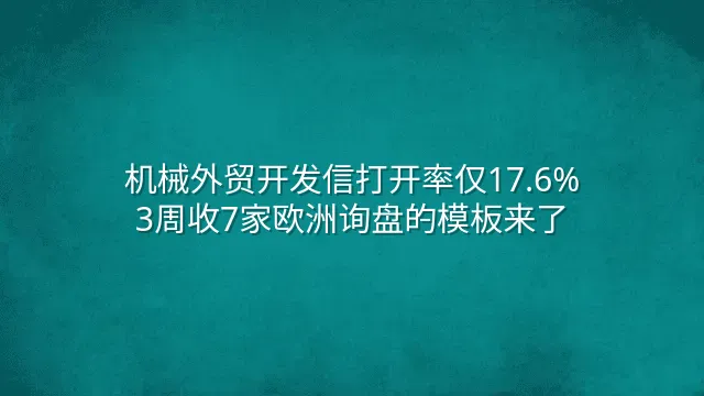 你写的不是开发信,是垃圾邮件。2024年《全球贸易邮件报告》显示,传统机械外贸邮件平均打开率仅17.6%,主因是内容泛化、技术脱节、场景错配。某泵阀企业曾群发500封‘质量可靠,欢迎合作’类邮件,换来7个回复,单客获客成本高达3800元。