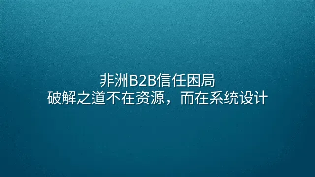 在非洲做B2B生意,不是拼价格,而是拼谁更懂本地规则。信任难建、周期长、信息不对称——但那些用对方法的企业,首年营收增长普遍超35%。